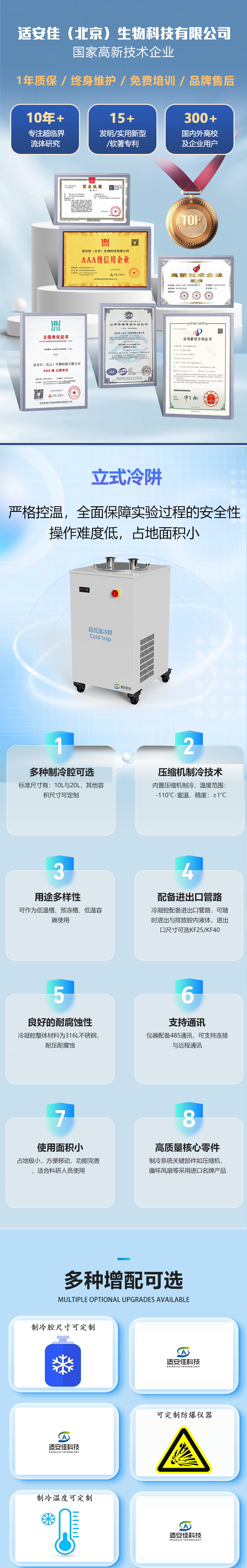本機是通過壓縮機進行制冷,把腔體或者外接容器降低至目標溫度,用于冷凝捕集從其它裝置中排出的水蒸氣及有害氣體等,提高真空系統的工作效率,延長真空泵的使用壽命。也可用作于低溫反應,當作低溫容器使用。